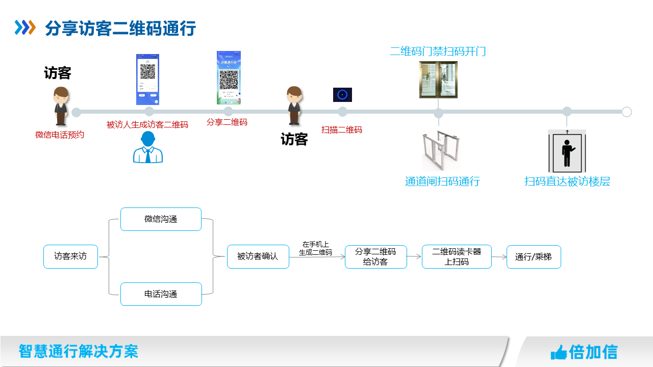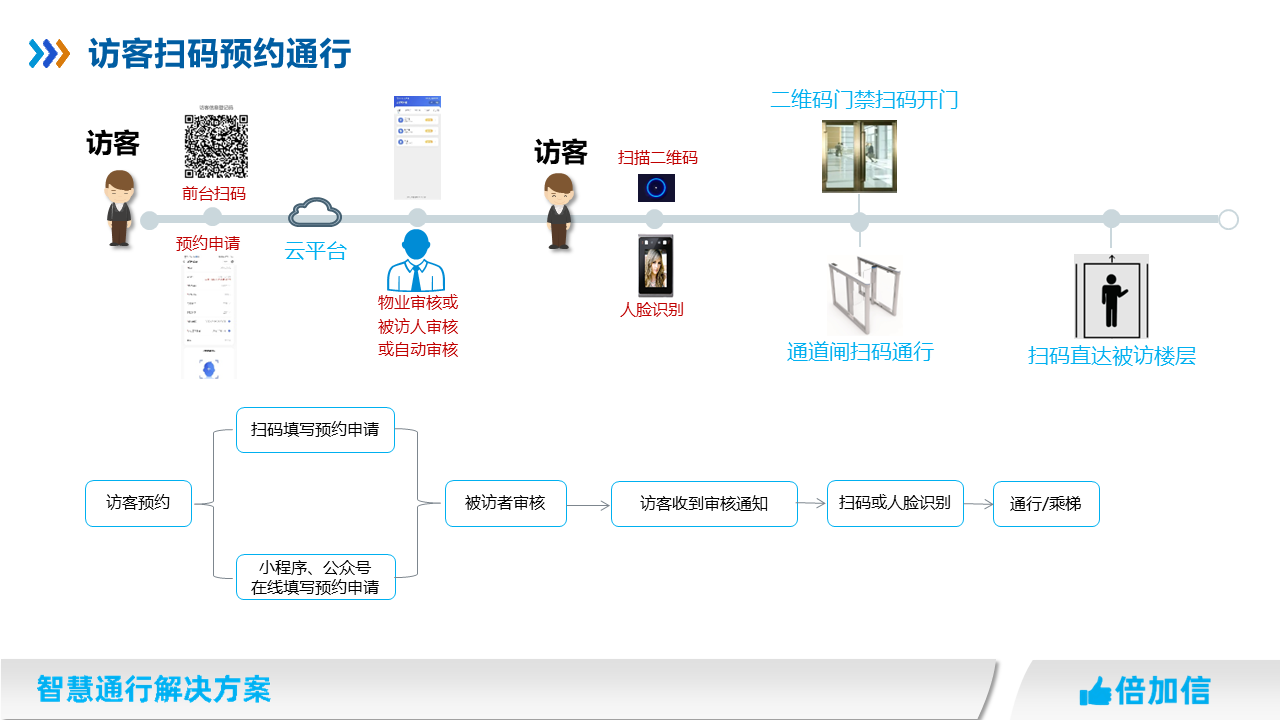 在住宅小區、寫字樓、園區、企事業單位等場所,物業往往針對外來人員都需要管控,我司提供多種訪客通行解決方案,滿足不同場景訪客進出物業管理需求。