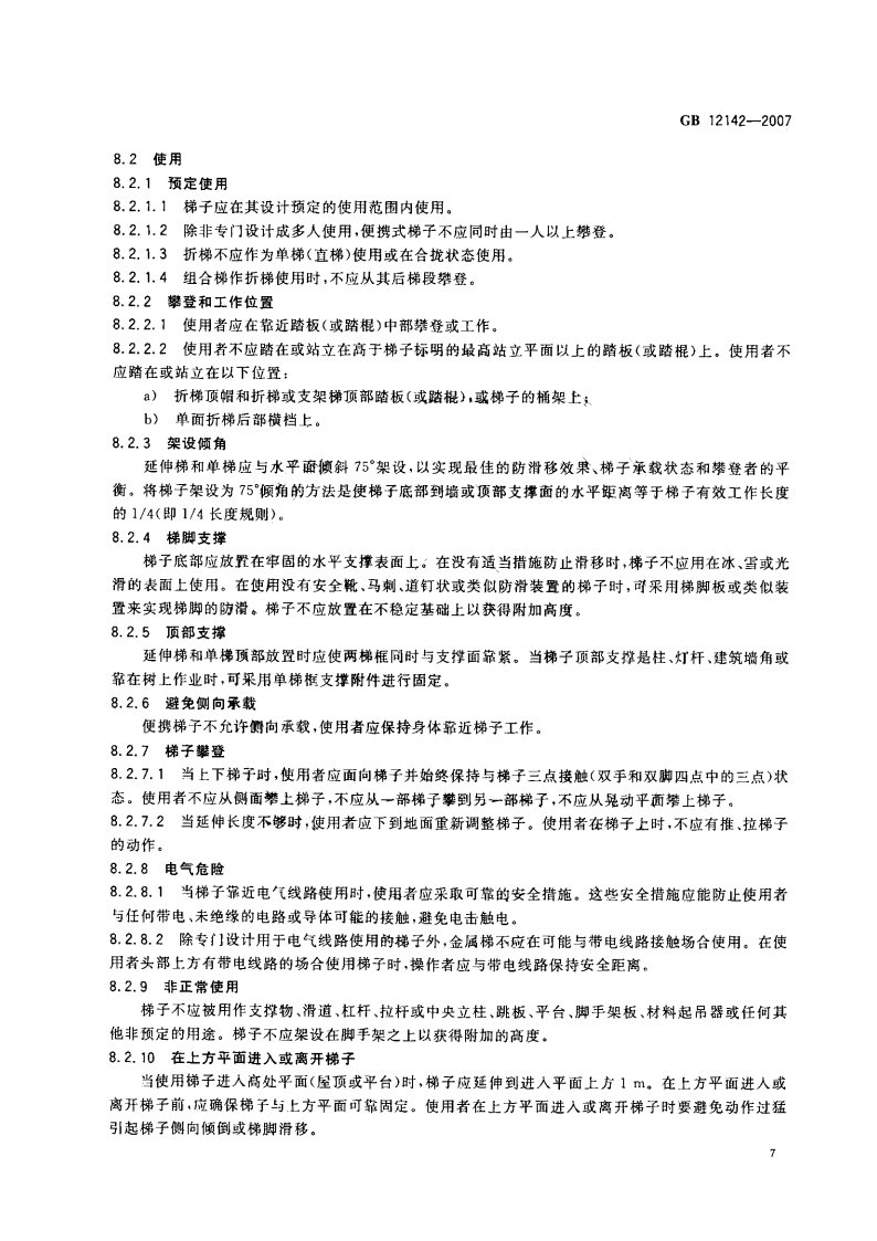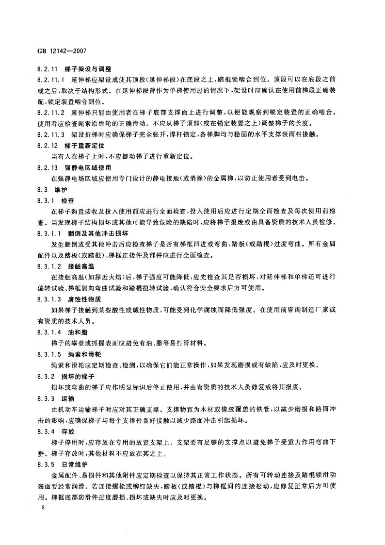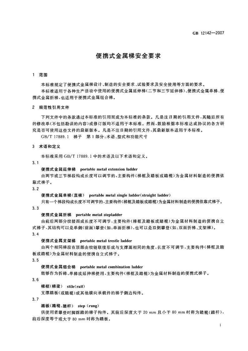 《便攜式金屬梯安全要求 GB 12142-2007》國家質(zhì)量監(jiān)督檢驗(yàn)檢疫總局、國家標(biāo)準(zhǔn)化管理委員會(huì)