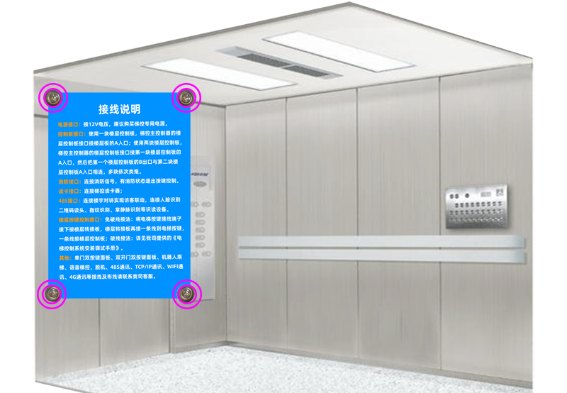等吸在電梯按鍵后面的槽中,施工人員站在電梯里打開電梯檢修口就可以安裝設備。