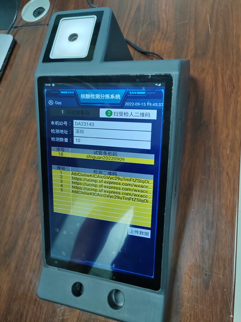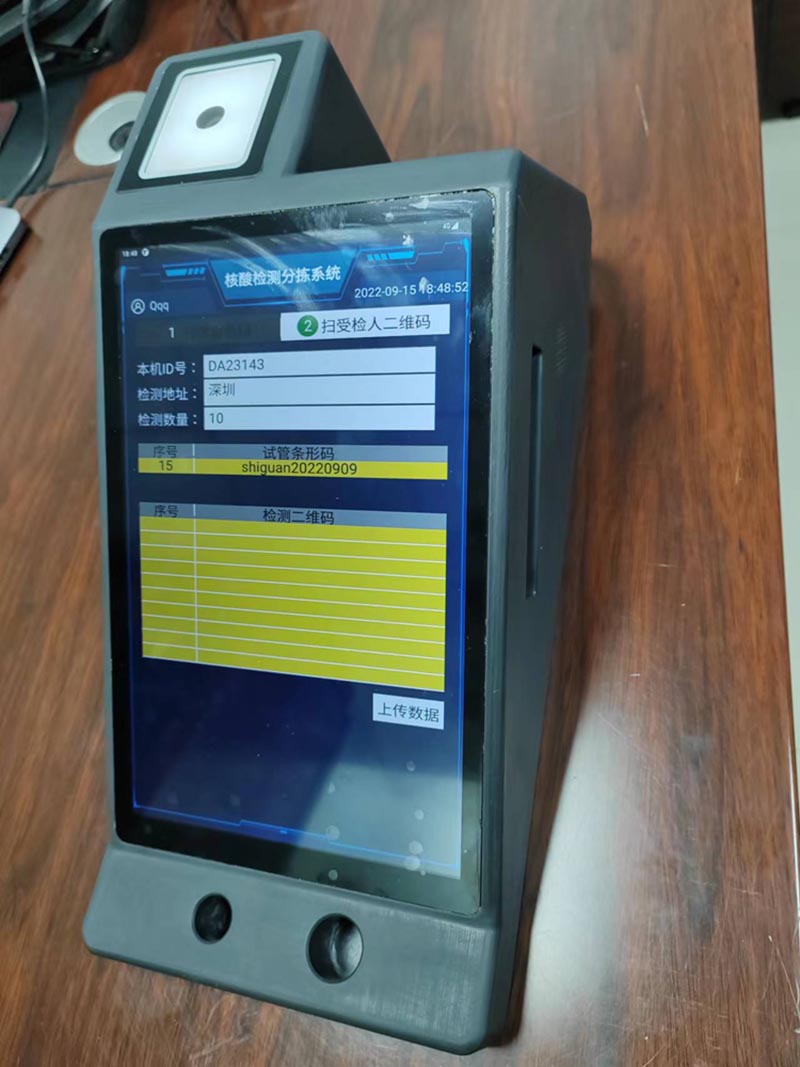 5、依次進行,滿了5人或者10人或者20人后,系統提示掃試管碼,同時上報數據給衛健委平臺;