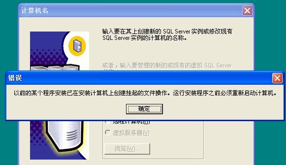 重新安裝SQL Server的時候出現的情況。“以前的某個程序已在安裝計算機上創建掛起的文件操作。運行安裝之前必須重新啟動計算機”的提示。