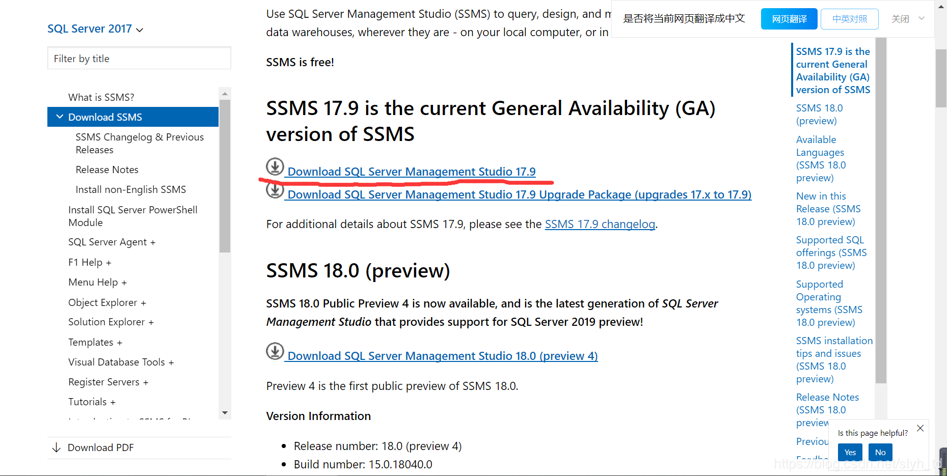 1. 官網(wǎng)下載SQL Server Management Studio     https://docs.microsoft.com/en-us/sql/ssms/download-sql-server-management-studio-ssms?view=sql-server-2017